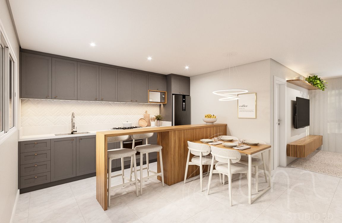 Salas de estar e jantar integradas